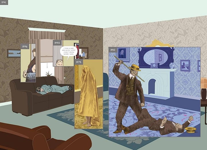 I read a few interesting books since my last post. The most memorable was a graphic novel called Here, by Richard McGuire. The story tells the history of the corner of a room, or is it a geographic location that becomes the corner of a room, because the time line includes dinosaurs. It honestly hurt my brain to read it, and I can’t even imagine what the motion picture is like, but I was really impressed with the idea and the way he put it together.