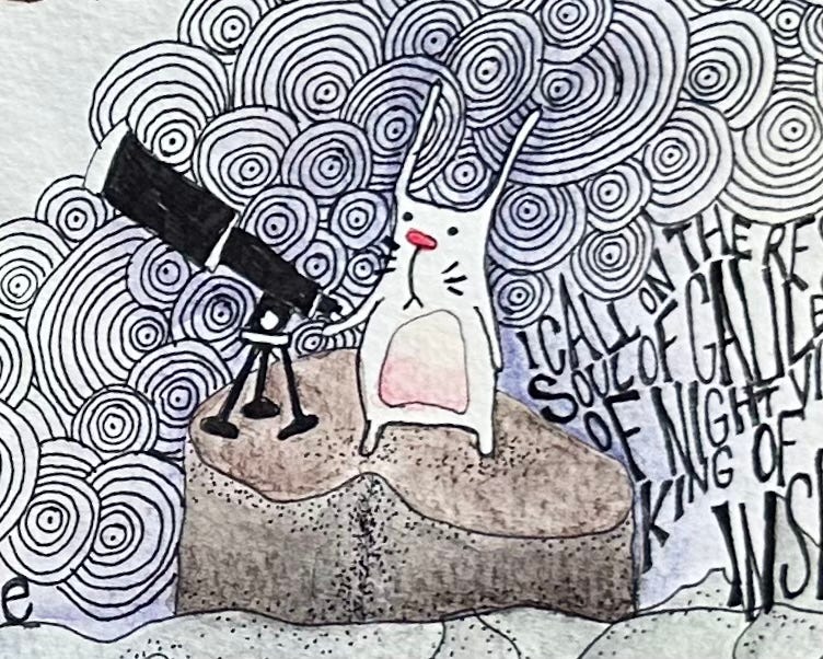Elizabeth Gilbert in Big Magic argues that we don’t find ideas, they find us. And if we don’t use them, they find someone else. I have only felt small examples of this like an occasional inspired idea for an ICAD prompt. Does that character you drew with the telescope have a story to tell? They look so very charming!
